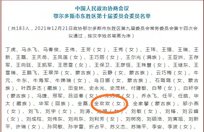 喜讯!全欢欢任中国人民政治协商会议鄂尔多斯市东胜区第十届委员会委员